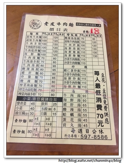老皮牛肉麵真是間很妙的麵店,賣的牛肉麵很普通,連豬肝麵都比它好吃~