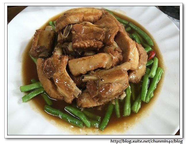 不油不柴的排骨鋪在四季豆上,吃起來很對味!