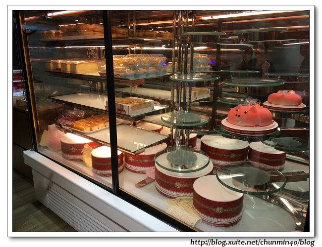 櫃檯前有個好大且漂亮的蛋糕冷藏櫃,裡面只有一個小豬蛋糕剛出爐。