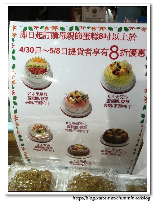 母親節蛋糕預購有打折,只是沒寫出價錢,聽小叔老婆說,這家東西不便宜就是了!