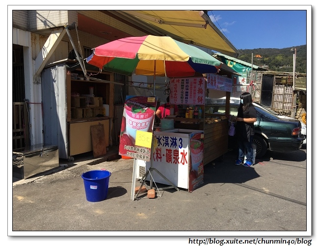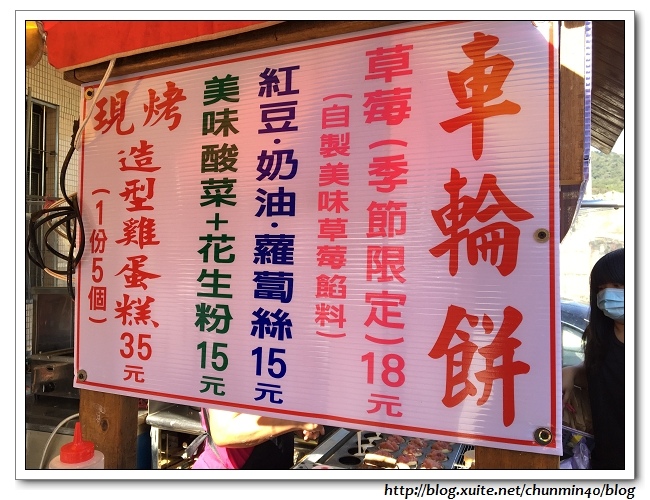 同心池旁的住家前,擺個小攤位,有賣車輪餅和草莓冰淇淋。