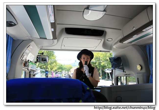 這是我們這車的導遊,是很標準的日本女生,講話語氣溫溫柔柔的。她的英文不太好,但是很用心的做筆記,講到一些地名,就會翻筆記照念英文跟給我們介紹。