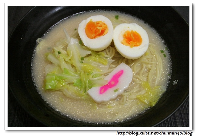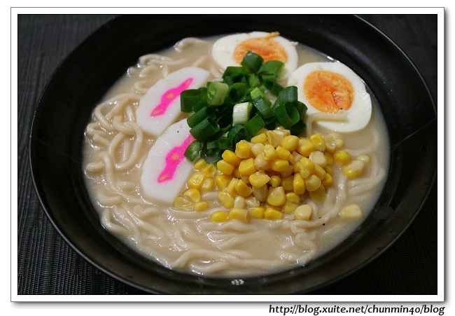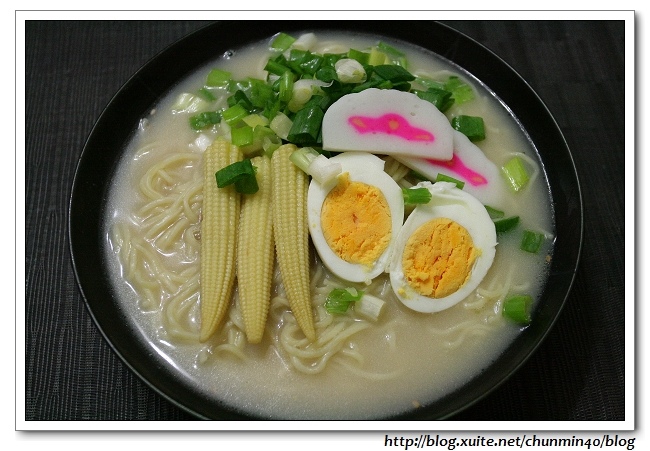 自己加了魚板、蛋、玉米粒和蔥花……