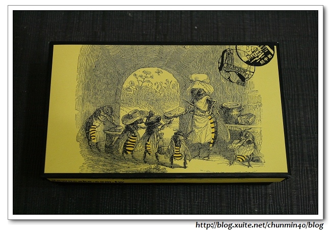 紙盒封面是像鋼筆畫風的蜂蜜圖案