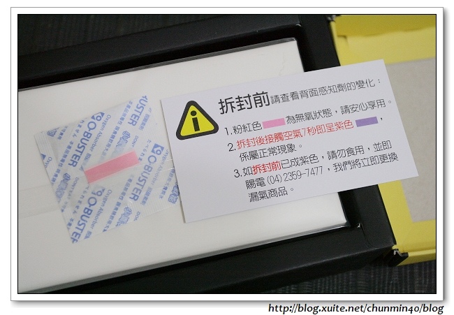 真空包裝還有感知器,一開始未接觸到空氣是粉紅色的。