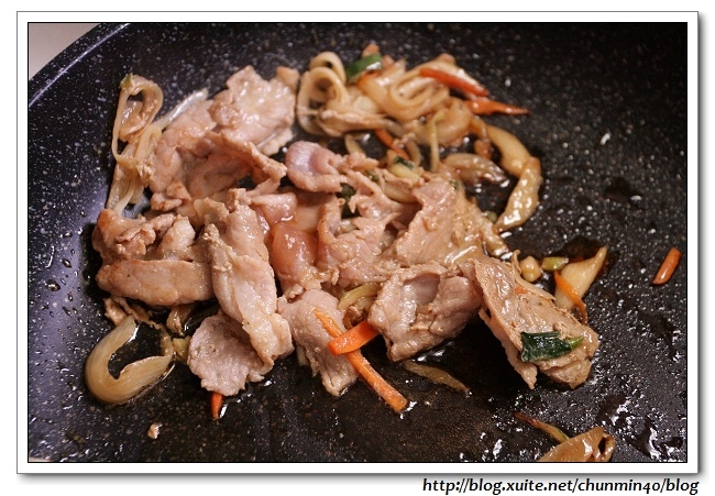 1.先將醃製好的肉片用黑麻油炒至半熟,起鍋放旁邊備用。