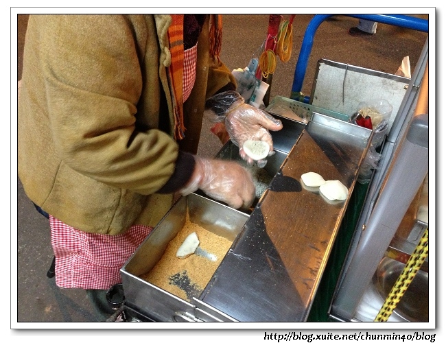 再丟進花生粉裹一裹,麻糬很Q不軟爛,芝麻、花生香濃交織在嘴裡,真是好令人回味!!
