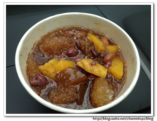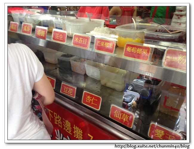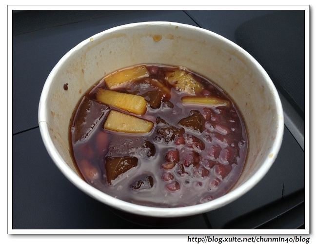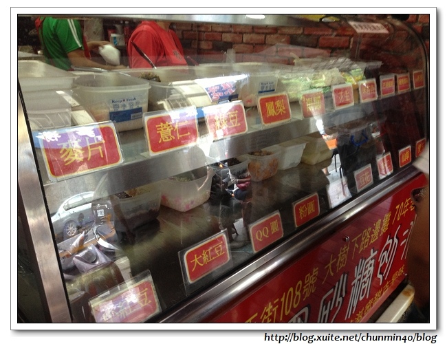 料我選了鳳梨、花豆、黑糖粉粿、紅豆。本身不敢吃米苔目、粉圓、芋圓類的,雖然這碗不是我要吃,但潛意識還是避開了這些品項XD