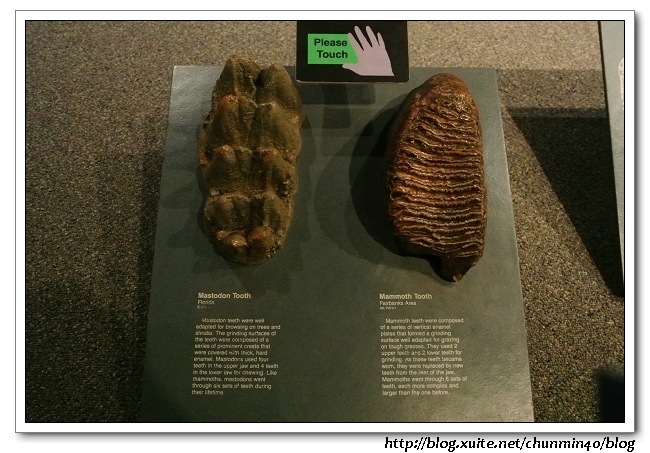 化石、骨頭的模型,可觸摸感受一下。