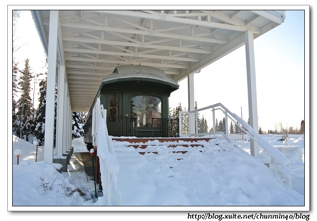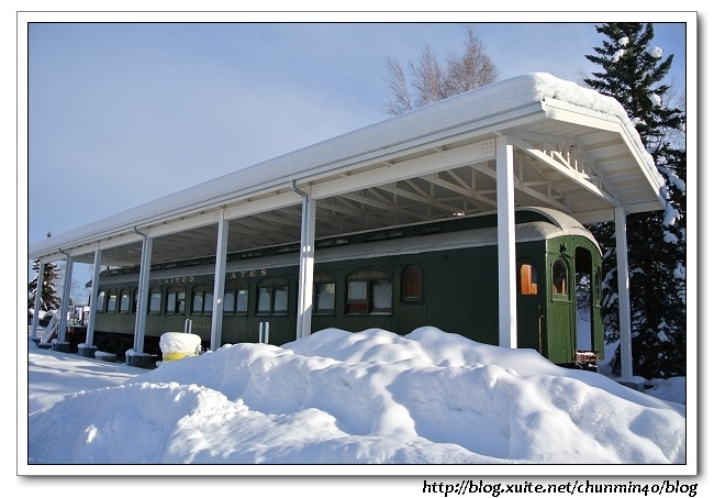 一進大門,右手邊展示著Hardening Railroad Car,不過雪積太厚,無法靠近。