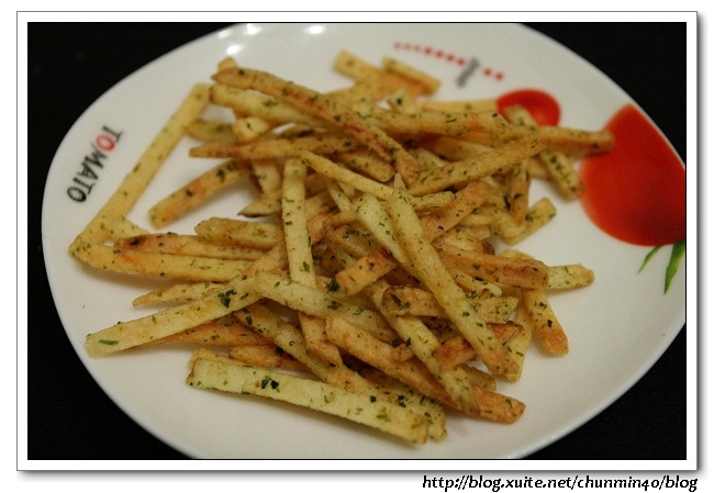 洋芋條非常的細,上面灑上許多海苔粉,整體味道不算太鹹,但洋芋味道不夠明顯。我覺得這麼細短的洋芋條比較適合小孩吃,我吃起來就太不過癮了,一次要抓很多,後來乾脆用倒的比較快XD~