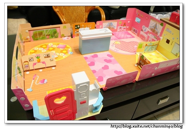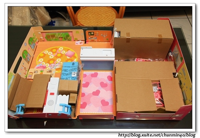 把配件拿開,可清楚看到印在紙盒上的場景,有些家具已經固定在上面了!