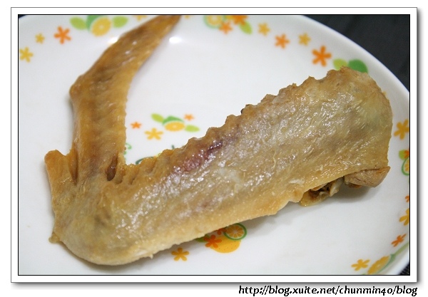 鴨翅看起來顏色很淡,但卻很入味,肉質不軟爛,很對我們家的味,只是小缺點就鴨翅上的毛沒有處理乾淨,看起來會有點驚驚......