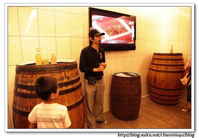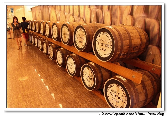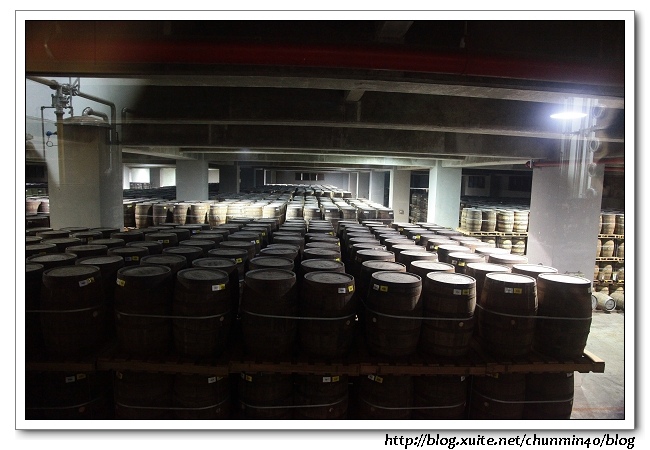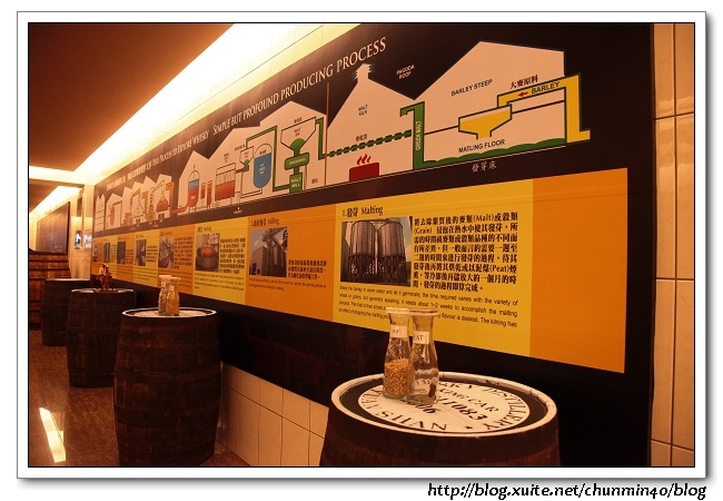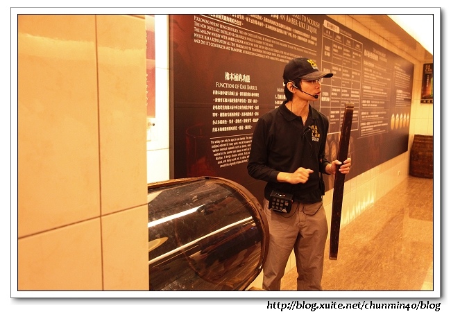 導覽人員講解威士忌製造過程,首先講解橡木桶…