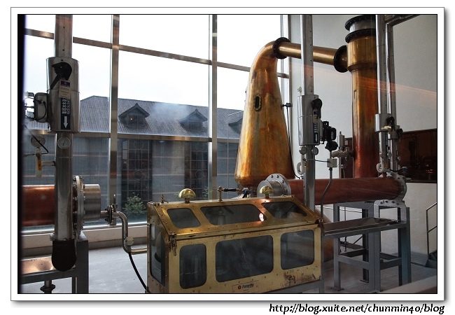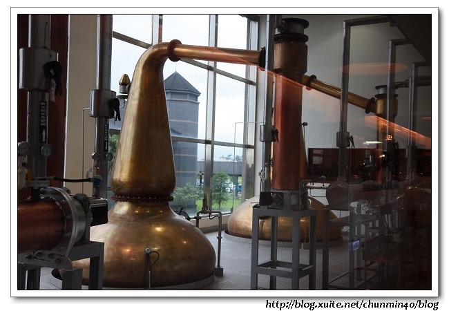 發酵後蒸餾,這蒸餾器是從蘇格蘭進口,製出來的酒味道香醇,不過雜質較多,目前金車售出的威士忌都是從組蒸餾出來。