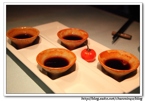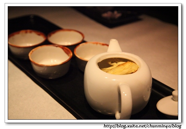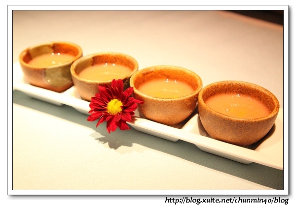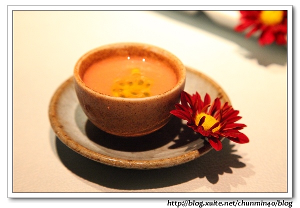 一入座首先幫我們每人倒茶,沒多久就送來的是紅心芭樂汁加百香果。