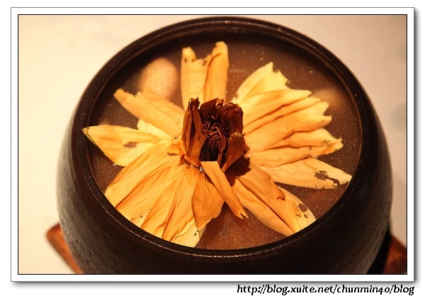 蓮花雞湯,這道是食養山房的招牌,即使菜單再怎麼換,唯一不變的就是這道「蓮花雞湯」。上湯之前,服務生會先把蓮花準備在桌上。