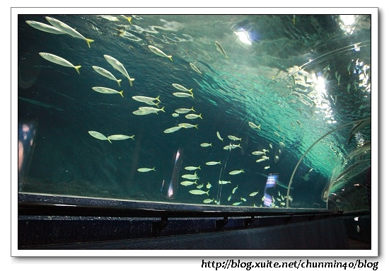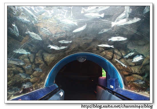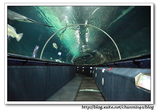透明的觀景隧道觀賞大鯊魚、黃貂魚以及40種1500條的魚類在美麗海底生物隧道中。