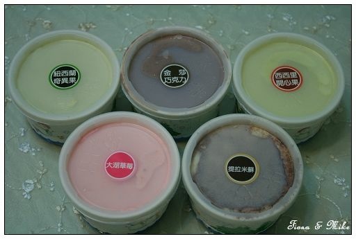 我選了大湖草莓、金莎巧克力、西西里開心果和紐西蘭奇異果四種口味,另外的提拉米蘇是我媽選的。