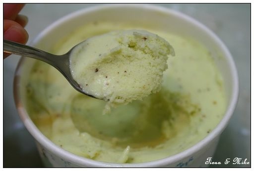 西西里開心果:開心果口味的冰淇淋是到希臘旅遊必嚐試的,因為在希臘吃的味道十分「特殊」,所以我想知道經由台灣調和過的味道會是如何?不過這個冰淇淋我吃到的都是杏仁味,而且這杏仁味還是很人工的,我對杏仁很敏感,天然不天然,我一聞就知道!