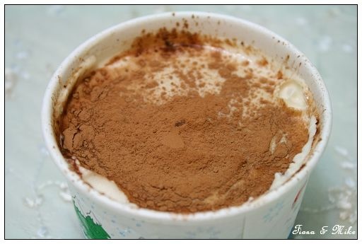 提拉米蘇:上頭灑可可粉,底下的冰淇淋奶味頗重,帶有些許的咖啡香,整體吃起來真的很像提拉米蘇,還不錯吃!