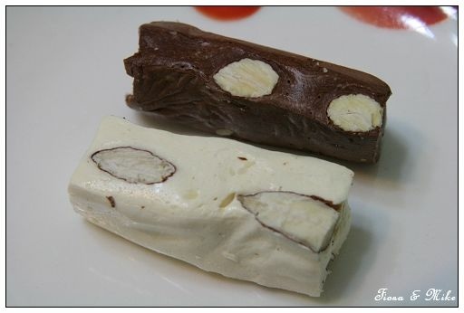 這家的牛軋糖有別於一般硬梆梆的口感,他做的軟硬適中,奶味濃郁,裡頭的杏仁很新鮮,讓人吃了會想再吃。可可多了巧克力香,不過我還是忠於原味!