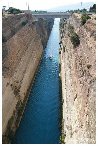 長6公里的科林斯運河位於科林斯地峽的最窄處,兩端分別連接薩洛尼克灣和利斯灣,使來往於愛琴海和愛奧尼亞海的船隻縮短了185海浬的航程。過了科林斯,就到邁錫尼。